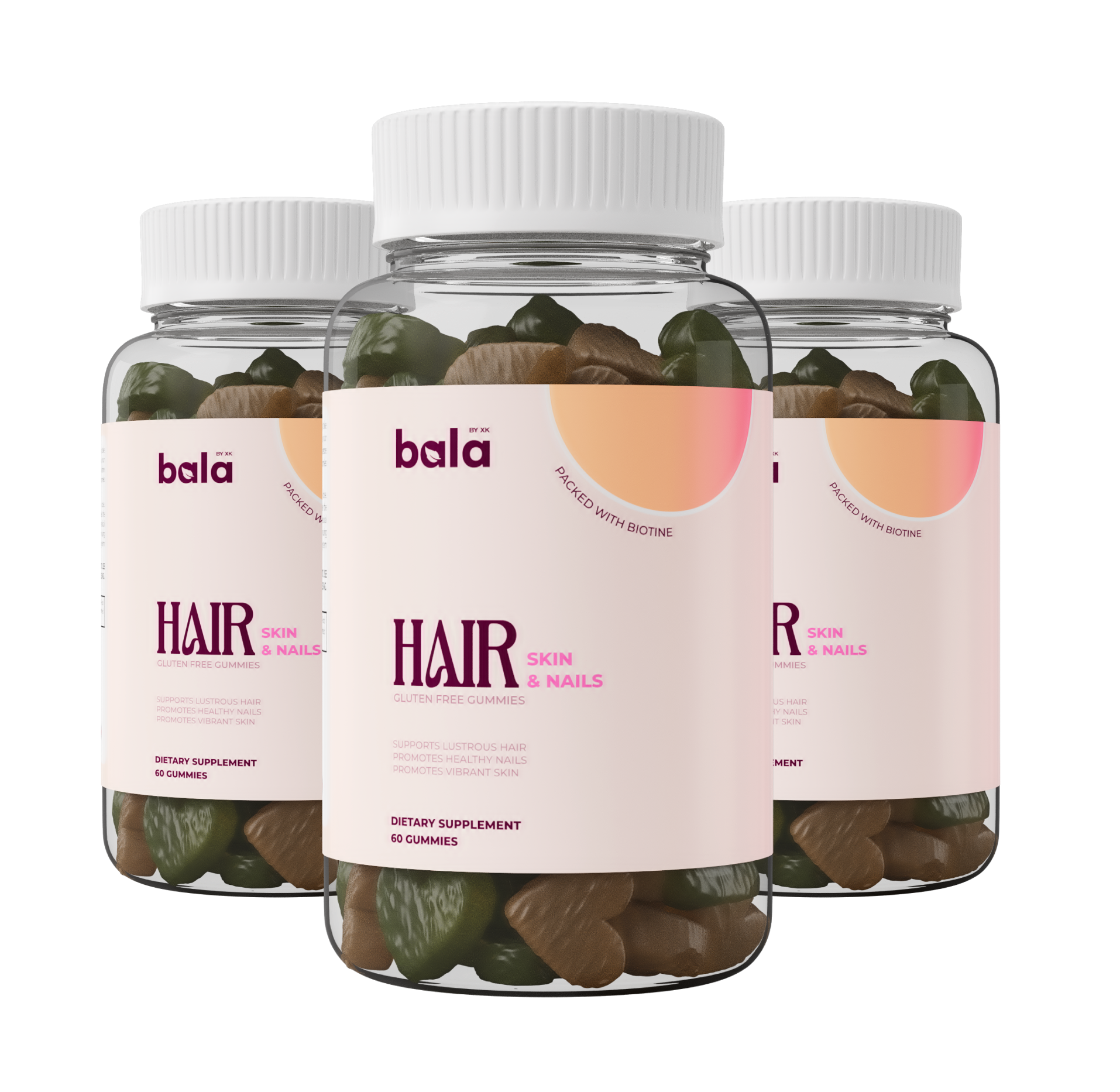 Experience comprehensive beauty support with our Hair Skin & Nails Gummies. Formulated with a potent blend of biotin for hair strength, zinc for skin repair, vitamins C & E for antioxidant protection, iodine for metabolic balance, and inositol for cellular health. These science-backed nutrients work synergistically to enhance your natural beauty from within, supporting stronger hair, clearer skin, and healthier nails.