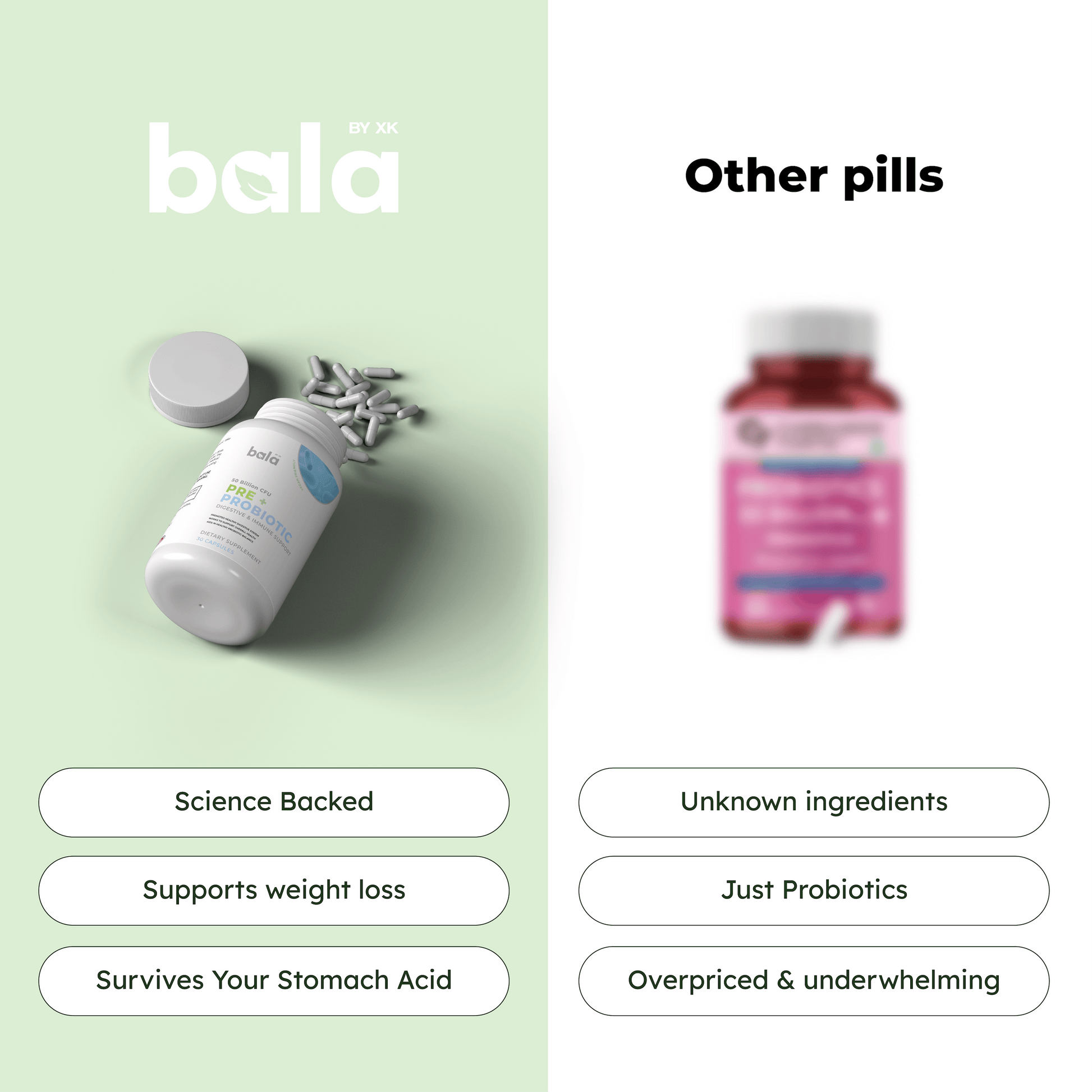 By fueling the production of gut-friendly short-chain fatty acids and easing low-grade inflammation, Bala Probiotics helps your body absorb nutrients more effectively—so you feel energized, resilient, and ready for whatever life serves up.