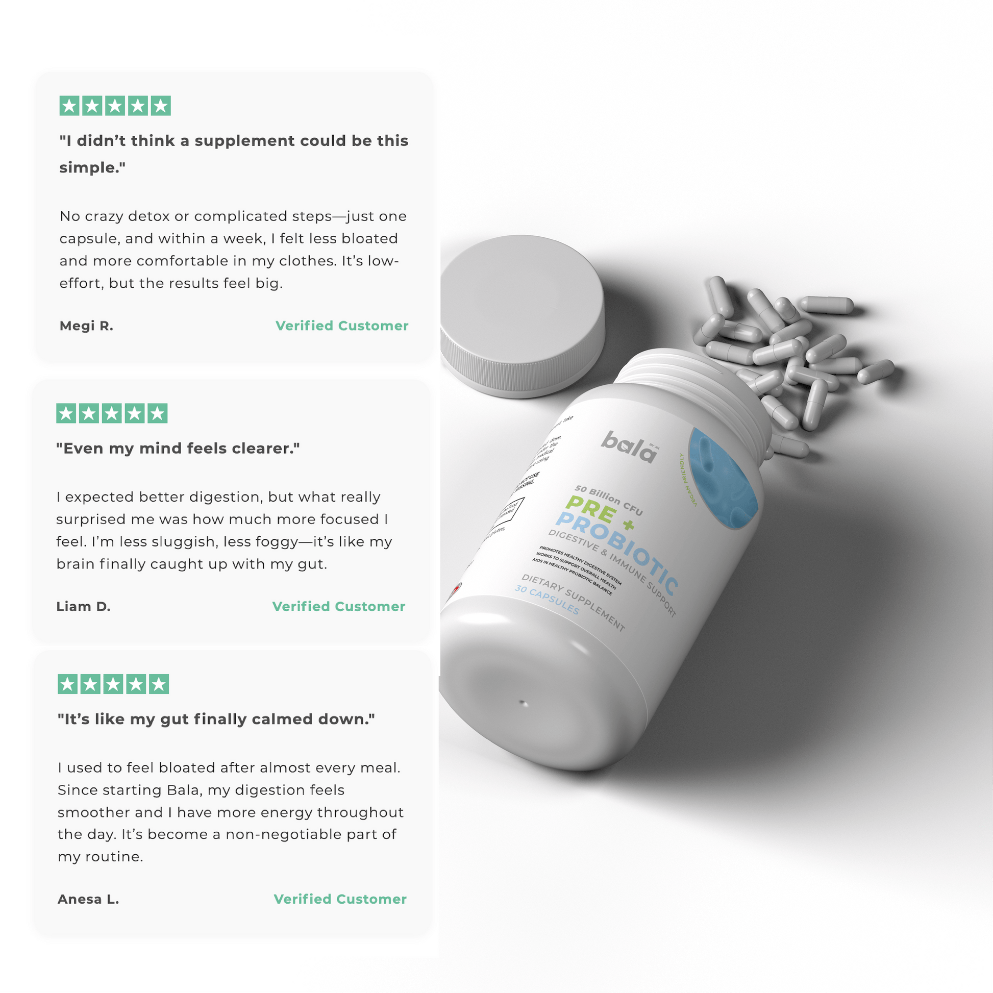 I used to feel bloated after almost every meal. Since starting Bala, my digestion feels smoother and I have more energy throughout the day. It’s become a non-negotiable part of my routine.